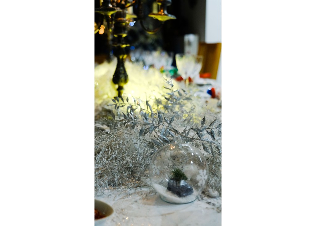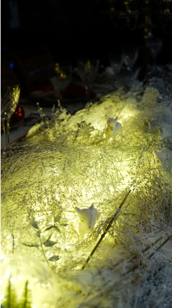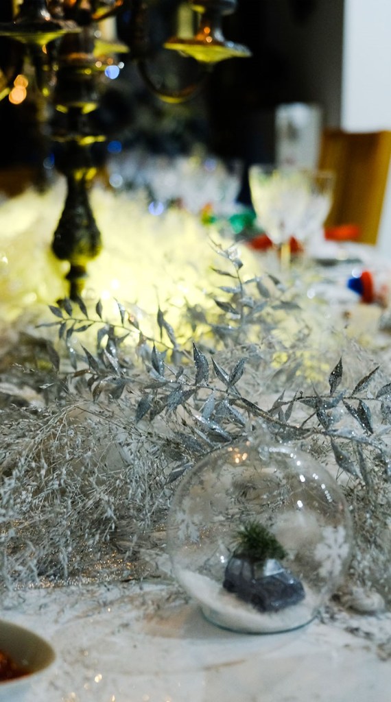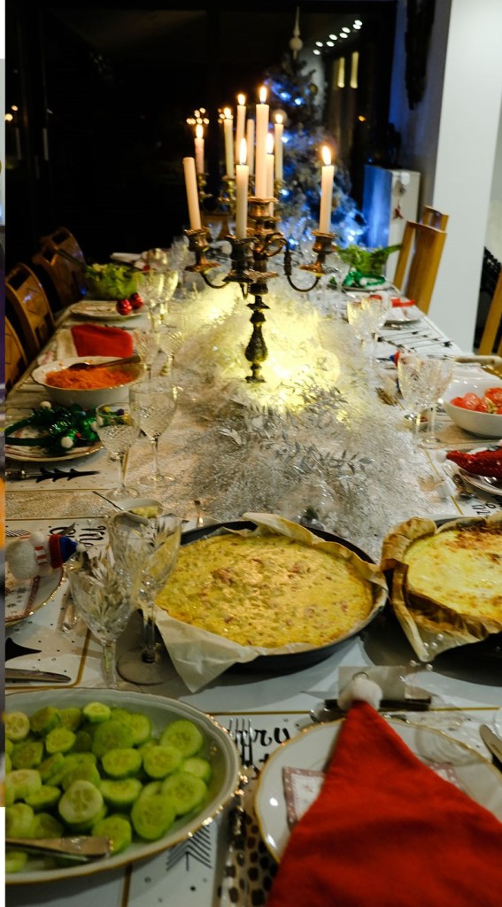 Je me suis inspirée de la couleur de mon sapin, dans les tons blancs, avec les accessoires que vous voyez sur les photos. Je voulais du simple et du pétillant à la fois, car je devais garder une certaine place pour disposer les 5 quiches concoctées par mes soins !! ça a donc été un pur moment de joie, de partage et de belle ambiance.